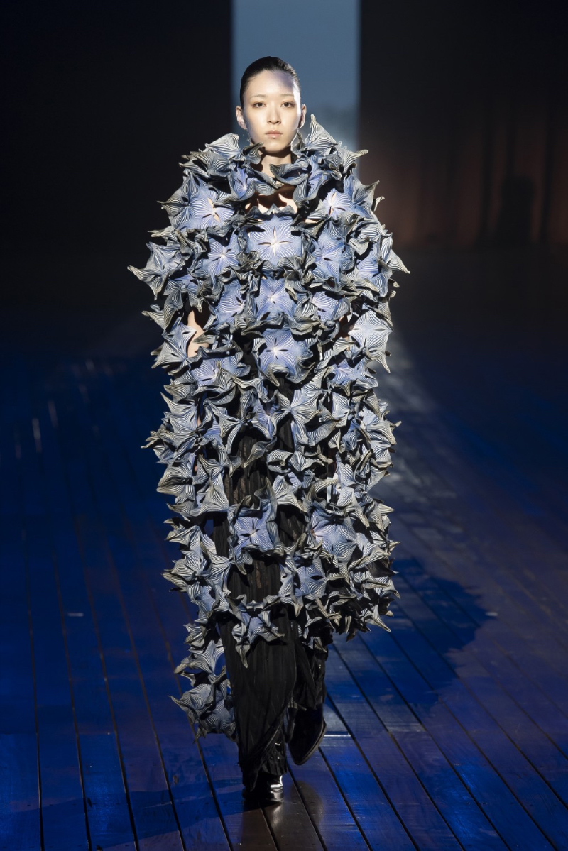 Evoke es la nueva colección de Yuima Nakazato Haute Couture FW21 que se inspira en las tonalidades de las profundidades marinas y las voces de las ballenas