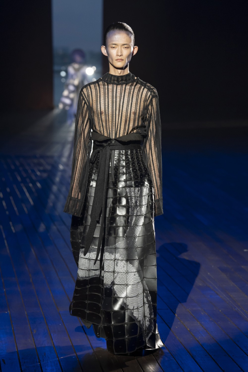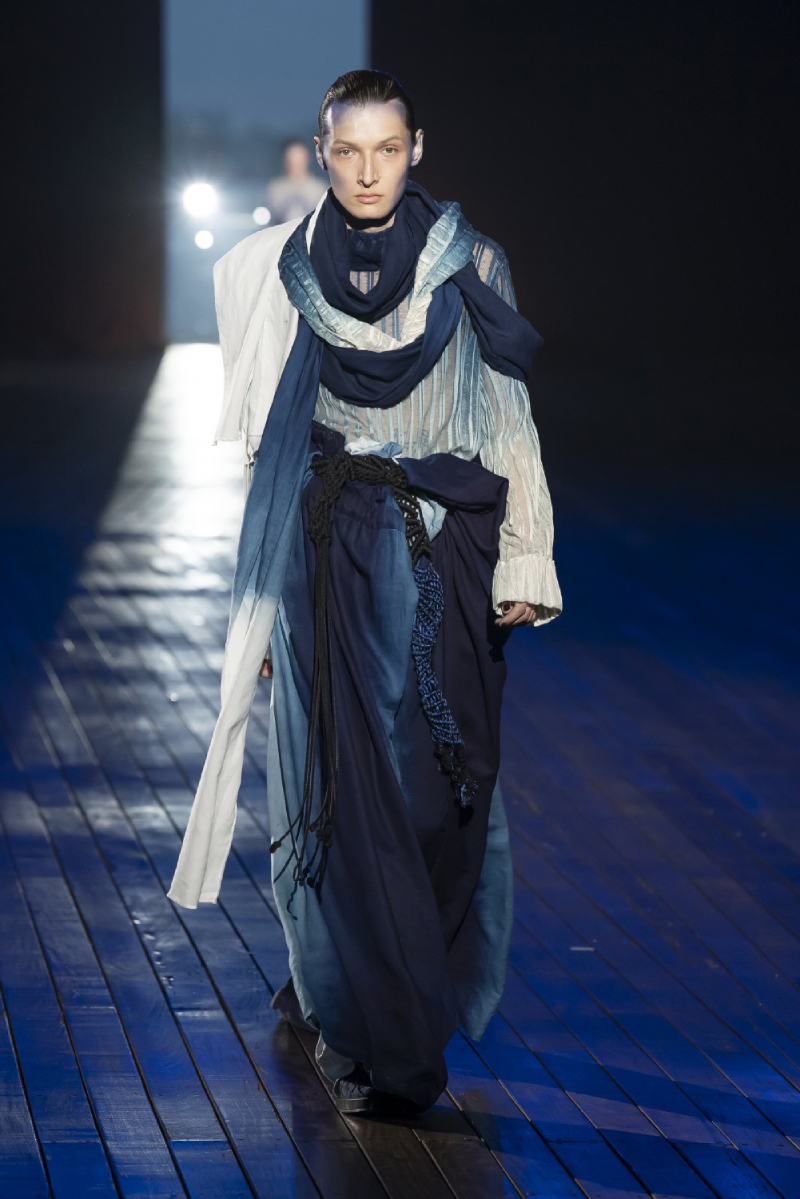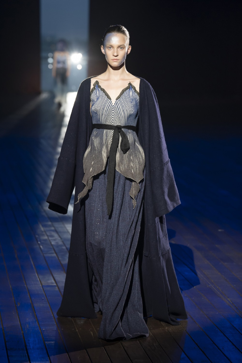 Evoke es la décima colección que la firma japonesa Yuima Nakazato presenta en la Semana de la Alta Costura y en esta ocasión también han participado Robbie Spencer como parte de la dirección creativa en el estilismo de los looks y el compositor, pianista y activista Ryuichi Sakamoto, quién cedió parte de sus obras musicales relacionadas con el océano para la escenografía en la presentación de la colección.