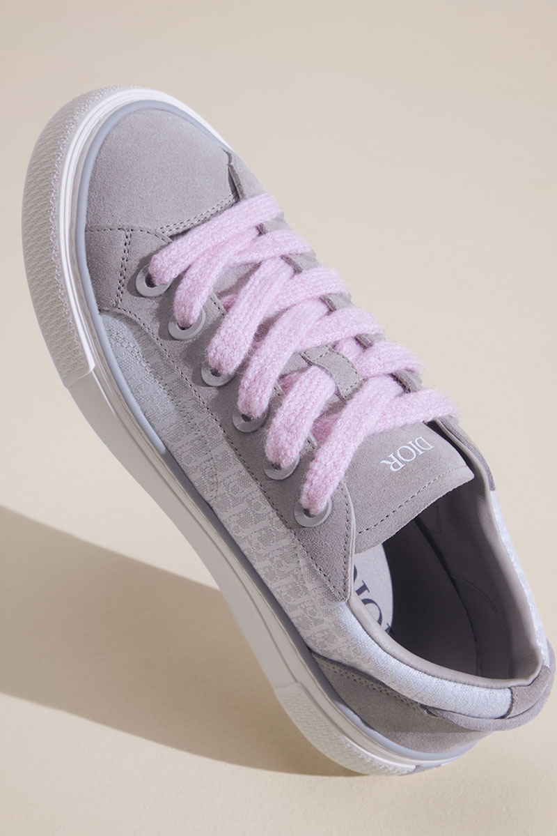 Pero basta sobre hablar de la zapatilla y no hablar de su estilo. La nueva silueta B33 de Dior Tears se presenta como una zapa de skate de estilo retro; de caña baja, puntera redonda y líneas extremadamente limpias. La magia está en los materiales, porque a parte de ser un ejercicio impecable del savoir-faire artesano, son unas zapatillas con texturas muy interesantes. Los cordones se presentan en formato chunky; en mohair y la suela es como las zapatillas clásicas de skate: blanca, gruesa y con refuerzos en puntera y talón (adornados con el Oblique) … un tag de Dior también decora el talón.