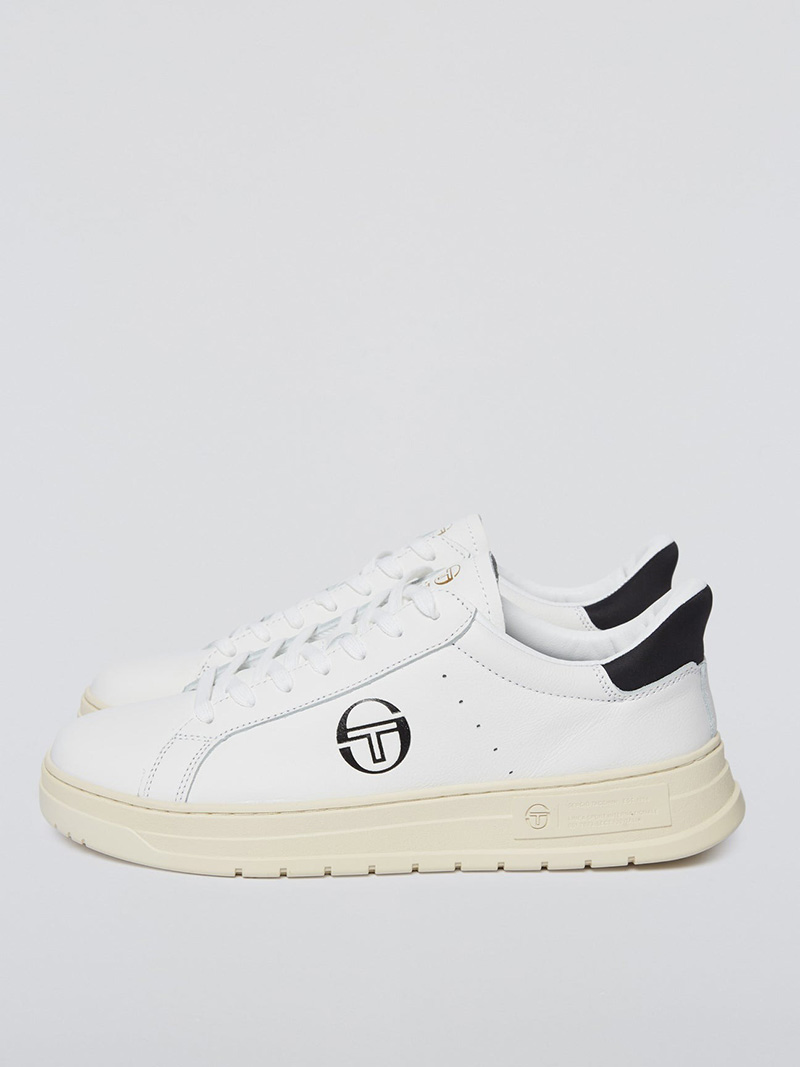El primer modelos de la nueva colección de Sergio Tacchini se titula Court Classic; tal como su nombre lo indica, se trata de una silueta clásica de zapatilla de tenis pensada para armar algunos de los mejores looks urbanos. El cuerpo superior se mantiene fiel a los modelos de archivo: líneas limpias y simples ejecutadas sobre piel blanca y un panel a contraste negro en el talón… el toque de modernidad viene en su suela gruesa y acanalada de goma color crema; ideal para romper el monocromatismo de siempre.