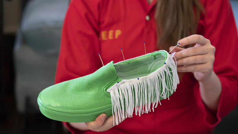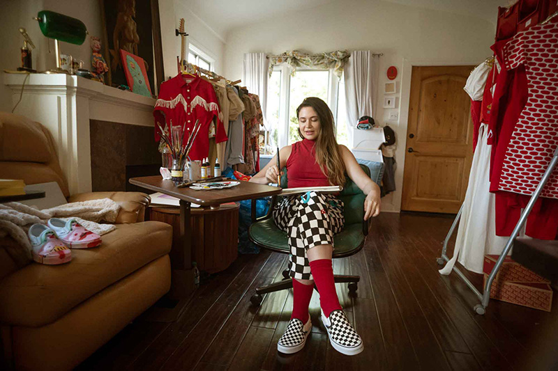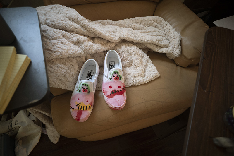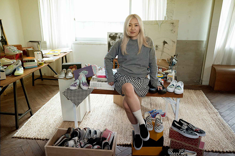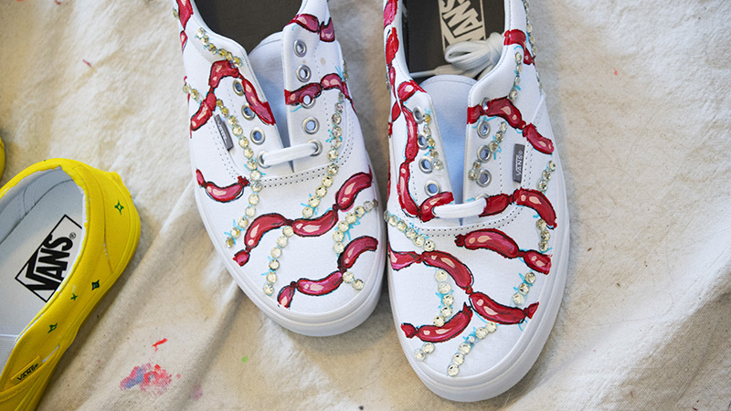 “Me gusta el reto de probar cosas nuevas. Si quiero una prenda en concreto, la creo yo misma. Tenía un par de Vans y me di cuenta de que estaban hechas con la misma tela que mis lienzos. Así que las pinté y se convirtieron en una obra de arte sobre un medio distinto”. Afirma Penelope Gazin, artista y emprendedora, sobre sus Vans customizadas.
