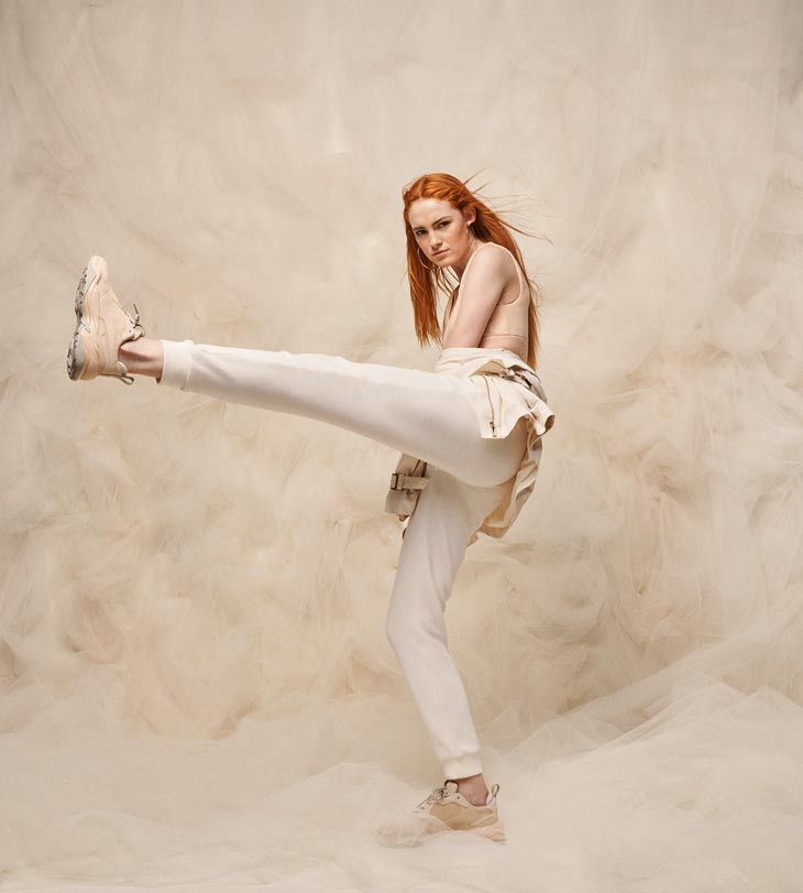 La silueta de las zapatillas Thunder rinden un claro homenaje a colaboraciones históricas de la casa Puma, siluetas que de alguna forma se anticiparon a su tiempo y que ahora son la norma. En concreto se inspiran en unas míticas zapas de los 90, las Cell System. Y también en la famosa colaboración Puma x McQueen. El resultado es un par zapatillas totalmente reinventadas que resaltan por aspecto voluminoso y sensación de grandeza, aunque luego son súper ligeras y cómodas. Perfectas para ir de un sitio a otro sin parar, como una chica nómada del siglo XXI.