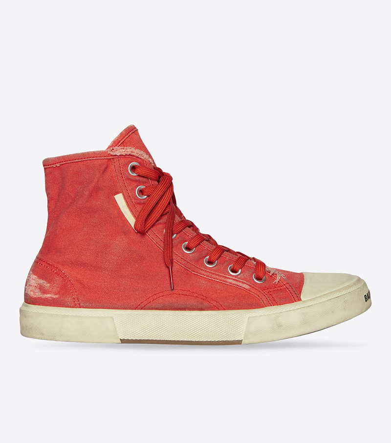 La zapatilla Paris de Balenciaga viene en dos versiones: en formato de caña alta desgastada o limpia y como un mule, únicamente disponible en versión clean. Ambos modelos están disponibles en blanco, negro y rojo y están disponibles ahora mismo en su web.