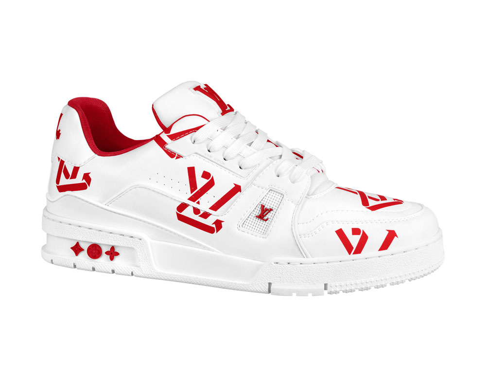 La nueva versión sostenible de la LV Trainer en blanco con logos verdes saldrá a las calles en agosto. La versión en rojo y negro se lanzará en septiembre. Las puedes conseguir aquí.