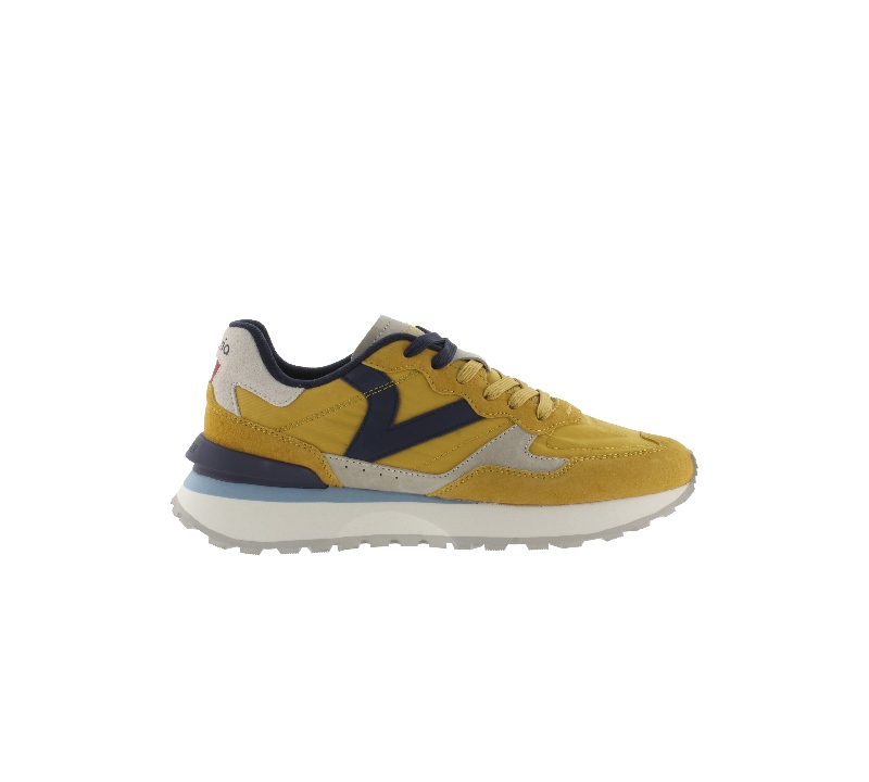 La segunda zapatilla se llama Rush. Es una sneaker que no solo tiene ese toque deportivo que tanto nos gusta de Victoria, sino también una combinación de texturas que la distingue de otros modelos de la marca española. Entre la variedad de opciones que ofrece Rush, desde acabados craquelados hasta prints o estampados de camuflaje, estamos convencidos de que elegirás la misma que nosotros: esta zapatilla en tono amarillo mostaza.