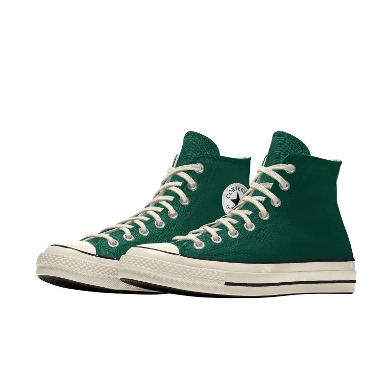 Siendo las converse una perfecta inversión de fondo de armario, el nuevo modelo Chuck 70 ofrece un estilo exclusivo y personalizable. Definido como un color consciente y refinado, el verde se convierte en el color perfecto del modelo clásico de la marca.
