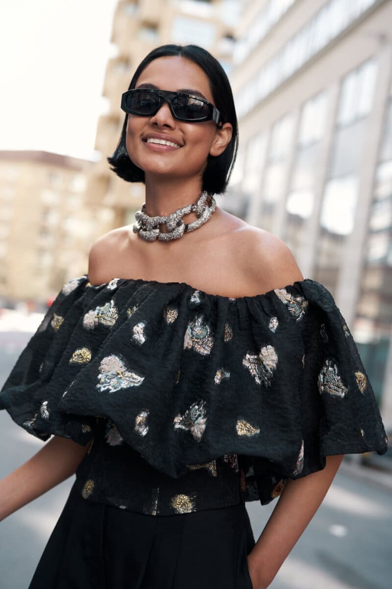 ¿Cómo empezó tu colaboración con H&M? H&M se acercó a mí. Fue admirable leer los informes de sostenibilidad de H&M, hablar con el equipo y ver su incansable entusiasmo y compromiso para alcanzar la circularidad incluso en medio de una pandemia. Personalmente, lo que me atrajo de la colaboración fue que la directora ejecutiva de H&M Group, Helena Helmersson, era la ex directora de sostenibilidad. ¡Pensé que era una cita única! Me apasionaba el compromiso por el cambio. Esta era una colección de la que quería formar parte porque me encanta lo que representa. Es innovadora, atemporal y cambia el juego con tantos materiales nuevos hechos de desechos reutilizados inventados por equipos de todo el mundo que fueron seleccionados en el marco de los premios Global Change Awards.